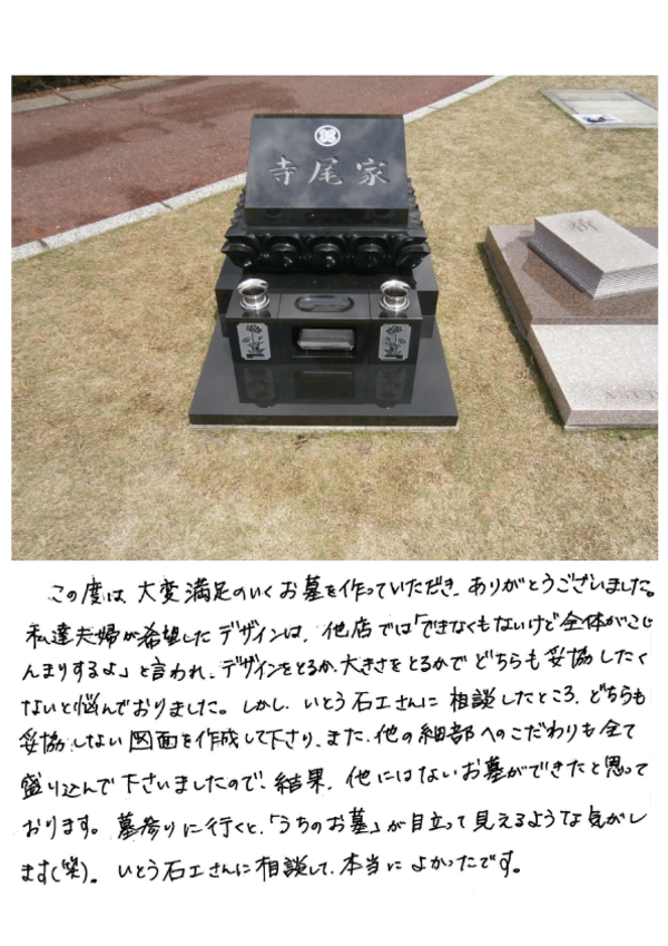 静岡/沼上霊園墓地サイズ: 芝墓所1.92平方メートルお墓本体サイズ: 間口25.5寸【77.3cm】 奥行35.5寸【107.6cm】石種: インド黒