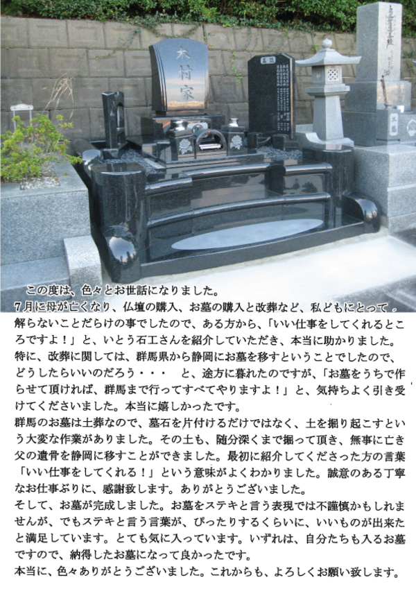【静岡の石材店】墓石販売や設計、施工などお気軽にご相談下さい【すんぷ石材】